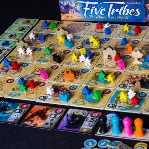 En Five Tribes, asumes el rol de un extranjero que se adentra en la mítica ciudad-estado de Naqala para manipular a las tribus locales, invocar a los antiguos genios y ganar influencia. Al final de la partida, el jugador con más puntos de victoria es declarado Gran Sultán y será el ganador.