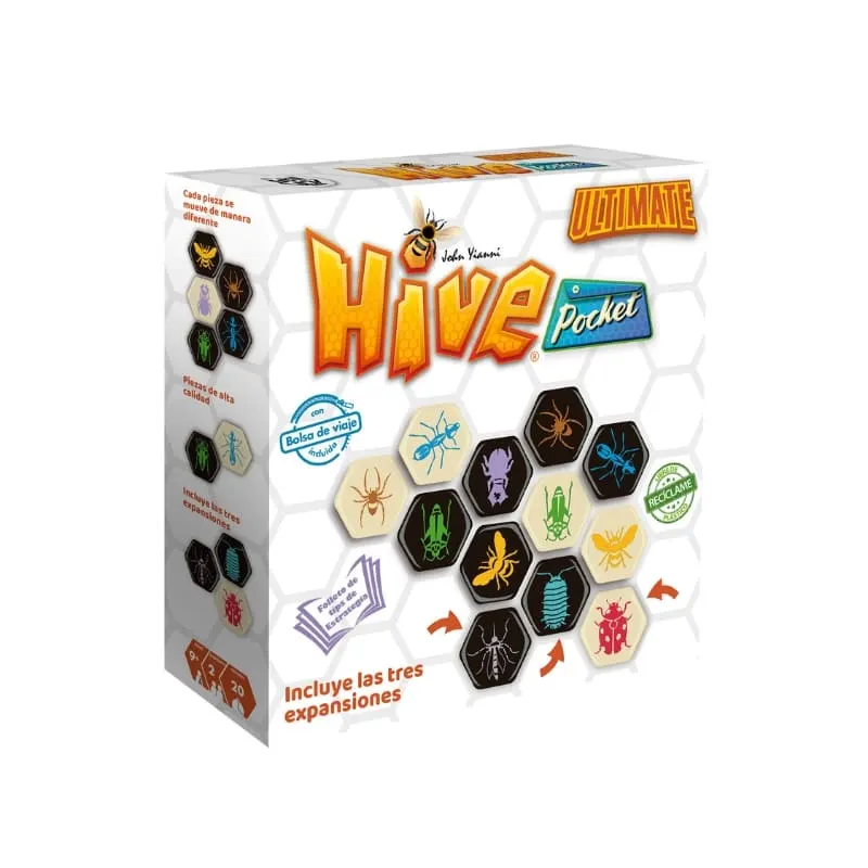 Juego rápido y divertido, sin tablero, galardonado, adictivo y estratégico. Cada criatura se mueve de manera diferente, solo debes rodear la Abeja de tu oponente para ganar.