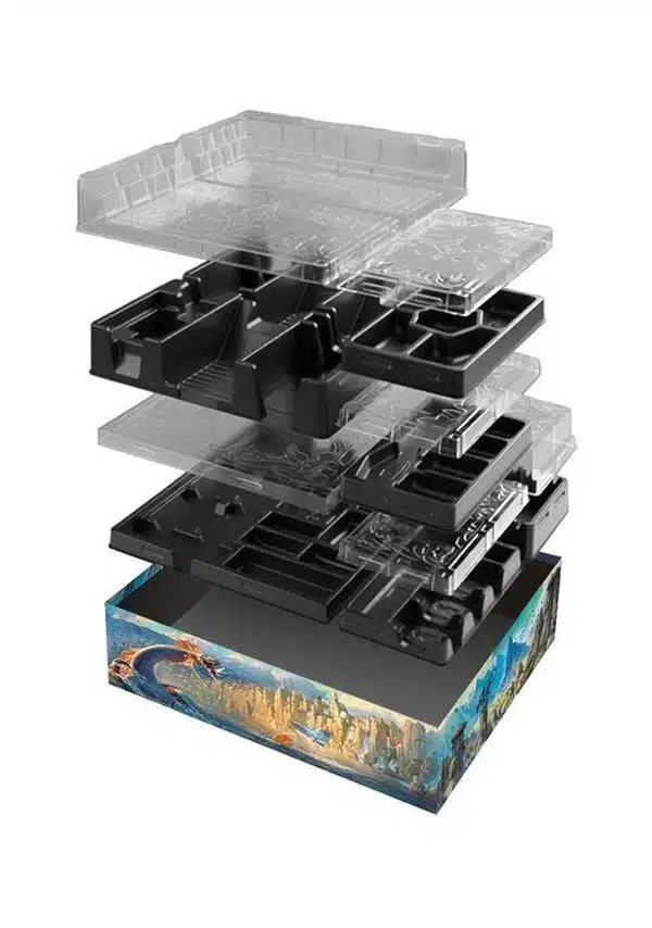 • Sistema de almacenamiento para todo el contenido de Arnak (compatible con cartas enfundadas)