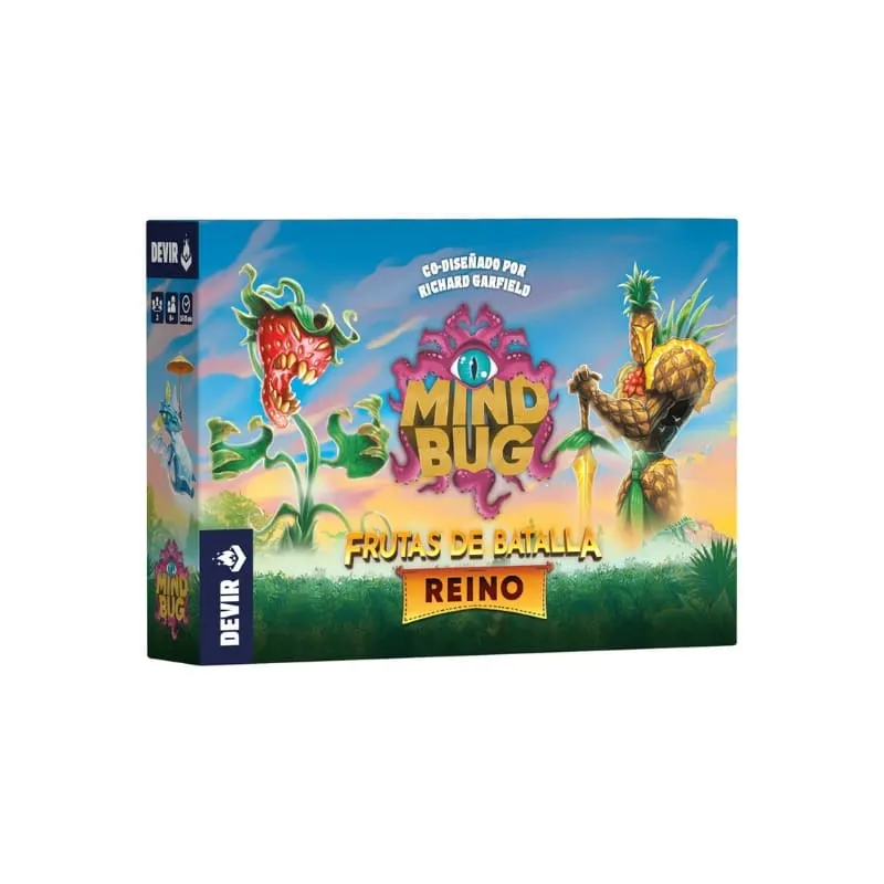 Planta tus criaturas de frutas y verduras, protégelas de tu oponente y cosecha sus increíbles habilidades. Al ser un juego independiente, Mindbug – Frutas de Batalla REINO puede jugarse solo o combinado con cualquier otro set de Mindbug. Este nuevo set introduce la mecánica de cosecha, que permite activar habilidades extremadamente poderosas unos turnos después de jugar una criatura.