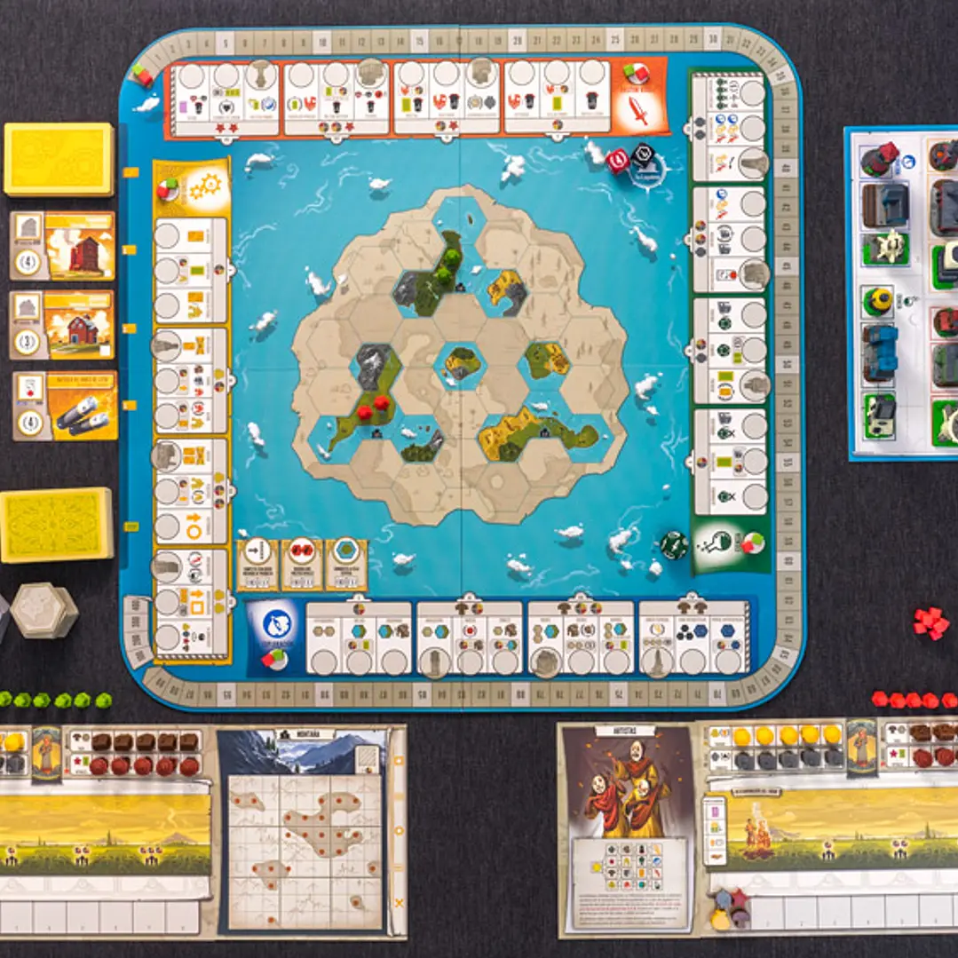 En una partida de Tapestry, avanzarás en 4 medidores de progreso (ciencia, tecnología, exploración y poder militar) para ir obteniendo beneficios cada vez más potentes. Al mismo tiempo, irás mejorando tus ganancias, construirás tu capital, sacarás partido de habilidades únicas, obtendrás puntos de victoria y colocarás cartas de tapiz que contarán la historia de tu civilización.